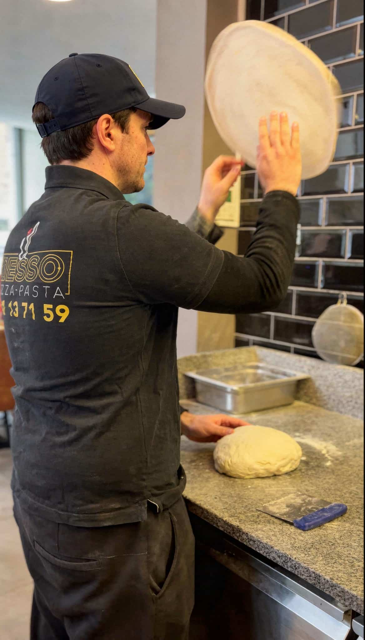 Le chef Nesso dirige son équipe, et ensemble, ils peaufinent la recette de la pâte, essentielle chez nous et défendent avec amour ce métier d’artisan.